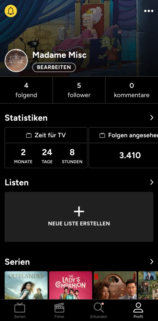 Außerdem gibt es wirklich ausführliche Statistiken darüber, wie viele Filme/Serien du geschaut hast, wie viel Zeit du damit verbracht hast usw.